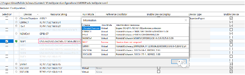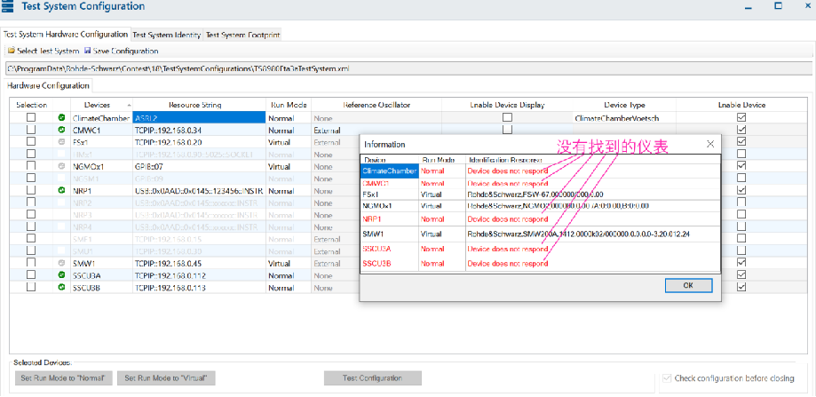 a.) IP地址沒有設對,把FSW,SMW的IP地址設成與test system configuration 對話框里的IP一致。