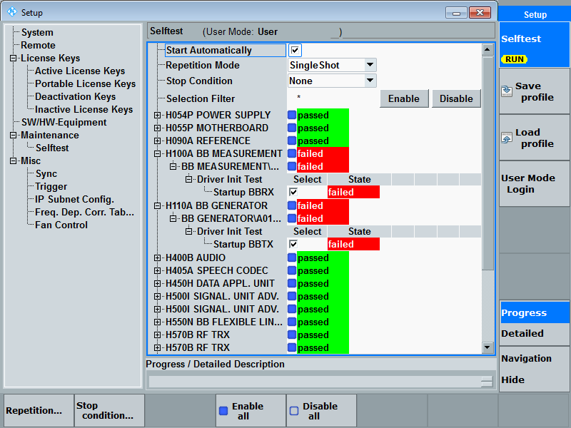 c.) SSCU沒有啟動完成,前面板的status燈不是綠色,而是黃色或者紅色,這種情況需要聯(lián)系R&S技術服務人員;