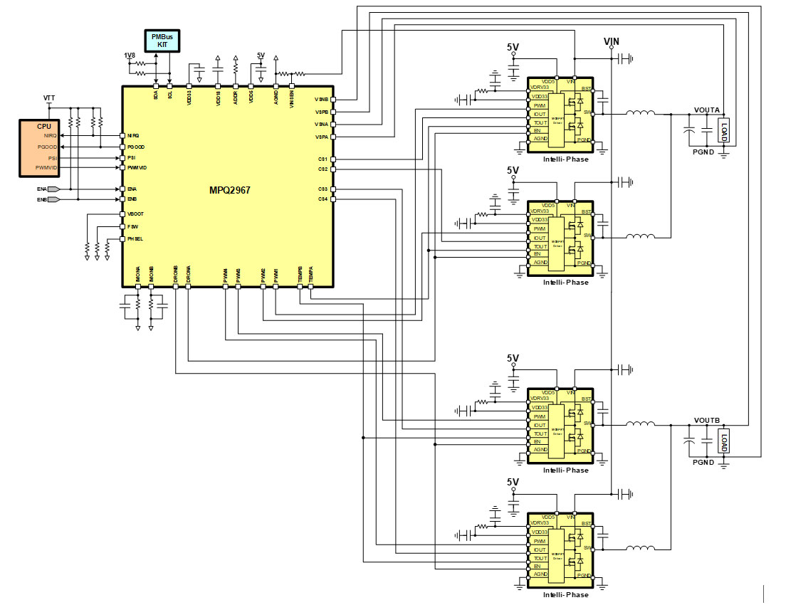 圖4:MPQ2967+Intelli-Phase DrMOS方案框圖