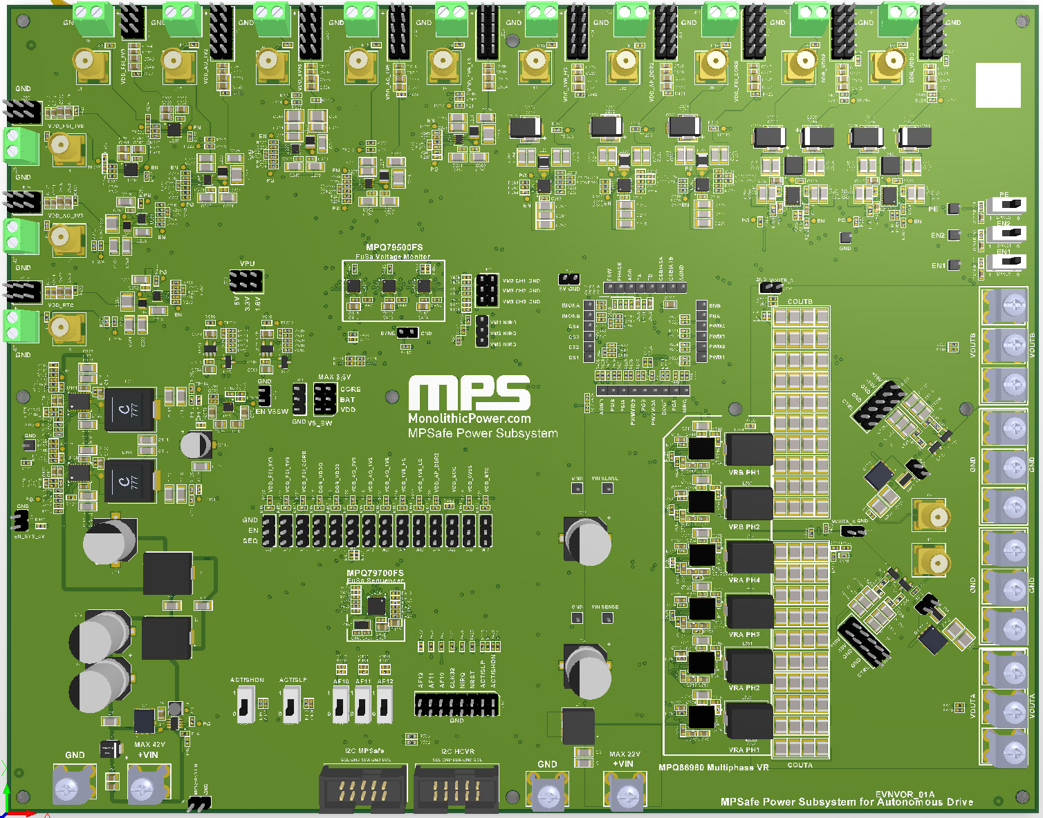 圖8展示了由MPS開發(fā)的具有智能電壓監(jiān)控功能的 MPSafe 電源子系統(tǒng)參考設(shè)計板。