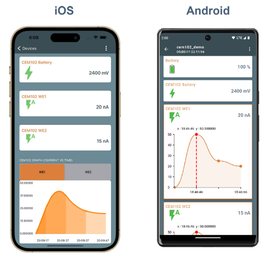 該解決方案獲固件、軟件等全方位的開發(fā)支持,包括iOS?和Android?演示應(yīng)用程序(圖4)。此外,安森美還提供CEM102評估板,配備完整示例代碼用于設(shè)置和進行測量,從而更輕松地開始系統(tǒng)開發(fā)。這一綜合解決方案旨在簡化開發(fā),促進新一代電流型傳感器技術(shù)的更大程度集成和創(chuàng)新。